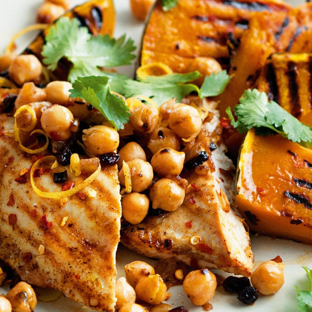 Autumn Protein Bowl with Grilled Chicken and Pumpkin Wedges, with Cumin Roasted Chickpeas (Gluten Free, Dairy Free, Not Spicy) is backordered and will ship as soon as it is back in stock.